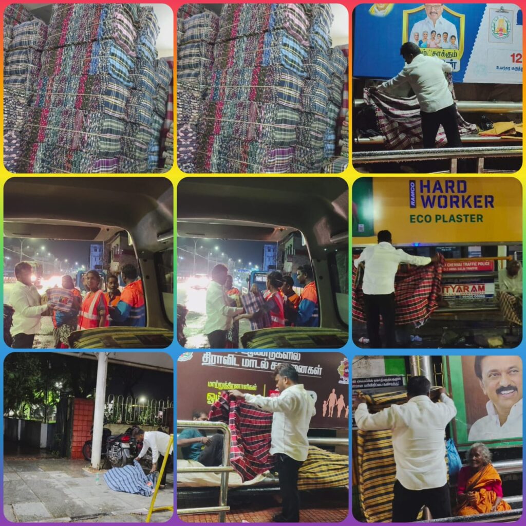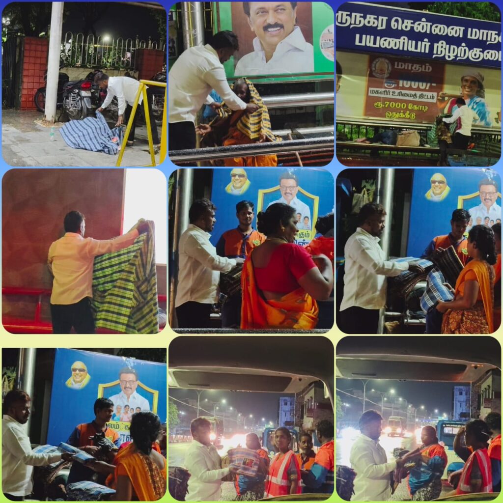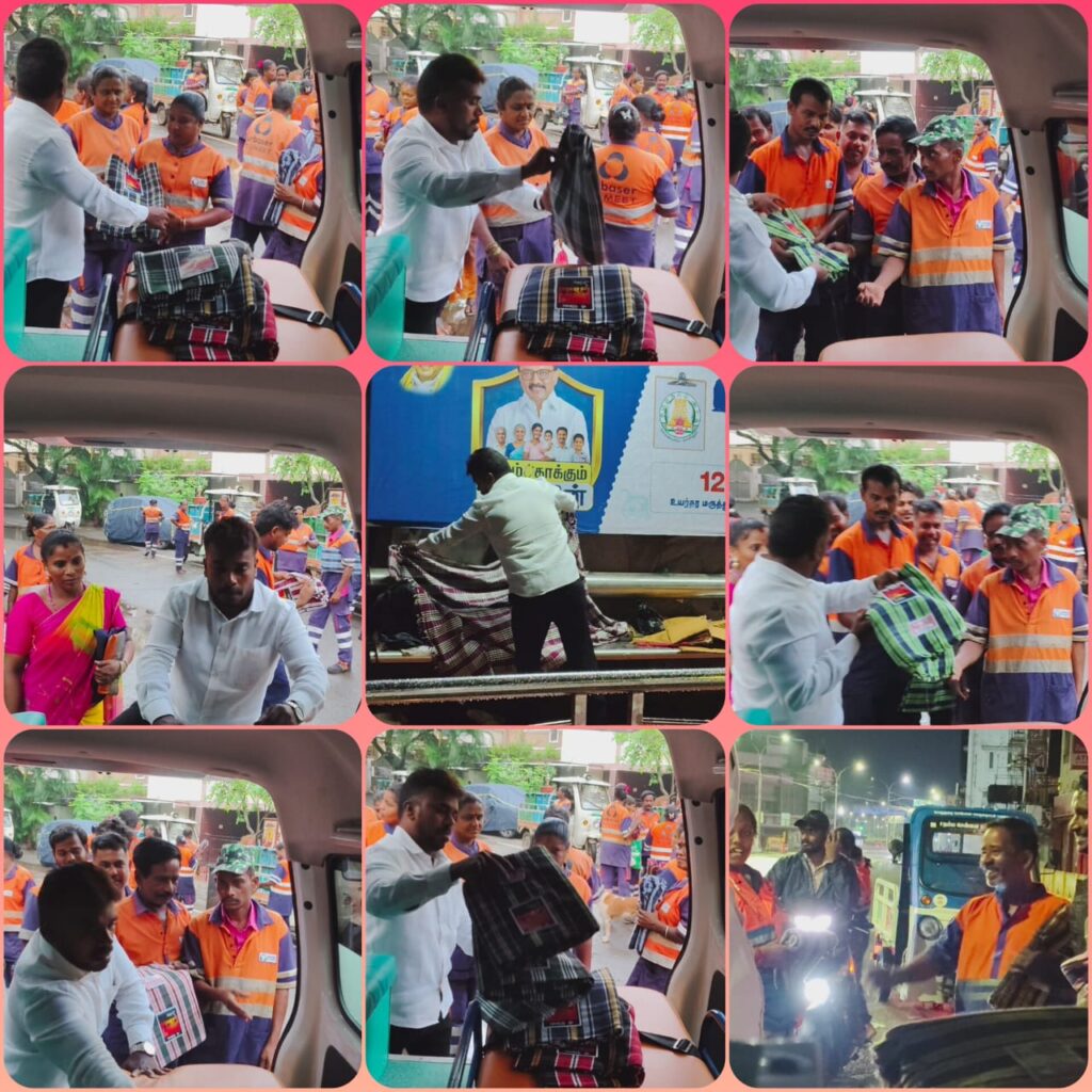 5)எல்.ஐ.சி, 6)சிந்தாதிரிப்பேட்டை, மற்றும் 7)கே கே நகர் போன்ற பகுதிகளில் வசிக்கும் மாற்று திறனாளிகள் மற்றும் துப்புறவு பணியாளர்கள் மற்றும் வீடுகளின்றி சாலையோரம் படுத்து இருந்த ஏழை எளிய மக்களுக்கு குளிருக்கு பயனளிக்கும் விதமாக 120 போர்வைகள் வழங்கப்பட்டது….