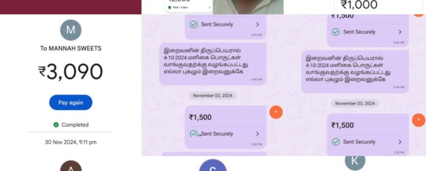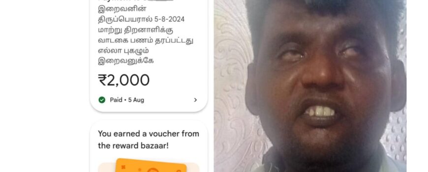 ஏக இறைவனின் திருப்பெயரால்...... இறைவனின் சாந்தியும் சமாதானமும் நம் அனைவரின் மீதும் நீடி நிலவட்டுமாக.... ஒரு மனிதனை வாழ வைத்தவர் எல்லா மனிதர்களையும் வாழ வைத்தவர் போலாவார் ( அல்குர்ஆன் 5:32) உதவும் உள்ளங்கள் பவுண்டேசன் சார்பாக..... 5-8-2024.... சென்னை தண்டையார்பேட்டை பகுதியை சேர்ந்த கணவனால் கைவிடப்பட்டு மிகவும் சிரமத்தில் இருக்கும் சகோதரிக்கு மாதாமாதம் வாடகை பணம் தருவதாக ஒப்புக்கொண்ட நிலையில் இன்று 11 வது மாதம் வாடகை பணமாக இறைவனுடைய உதவியால் இரண்டாயிரத்து ஐநூறு ரூபாய்[.....]