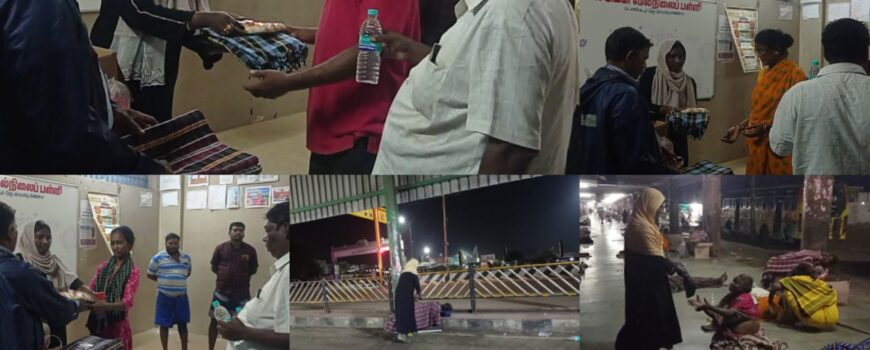 இறைவனின் திருப்பெயரால்..... இறைவனின் சாந்தியும் சமாதானமும் நம் அனைவரின் மீதும் நீடி நிலவட்டுமாக.... ஒரு மனிதனை வாழ வைத்தவர் எல்லா மனிதர்களையும் வாழவைத்தவர் போலாவார் (அல்குர்ஆன் 5:32) உதவும் உள்ளங்கள் பவுண்டேசன் சார்பாக.. மூன்று கட்டங்களாக 6-12-2024 விழுப்புரம் மாவட்டம் மற்றும்7-12-2024 தஞ்சாவூர் மாவட்டம் 12-12-2024 சென்னையிலும் மழை வெள்ளத்தினால் சாலையோரம் மற்றும் பேருந்து நிலையத்திம் மற்றும் முகாம்களில் தஞ்சமடைந்து வீடுகளின்றி வசிக்க கூடிய ஏழை எளிய மக்களுக்கு 400 போர்வை மற்றும் 400 பிரட் பாக்கெட் [...]